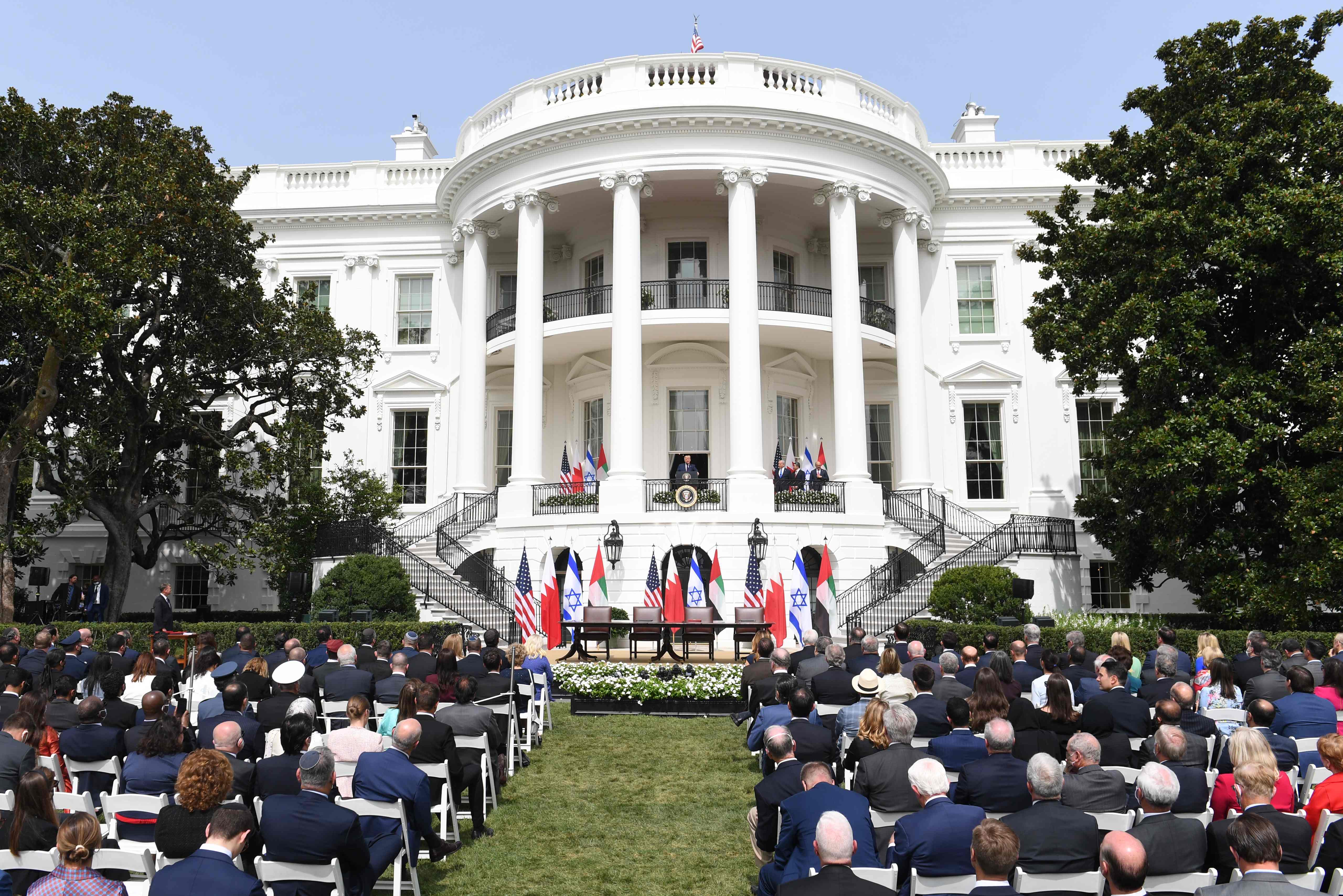 这是2020年9月15日在美国华盛顿白宫拍摄的以色列与阿联酋和巴林关系正常化协议签署仪式现场。新华社/法新